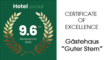 Wir haben ganzjährig geöffnet und befinden uns umgeben von einem großen Garten an einer ruhig gelegenen Seitenstraße mit Parkplätzen direkt am Haus.
